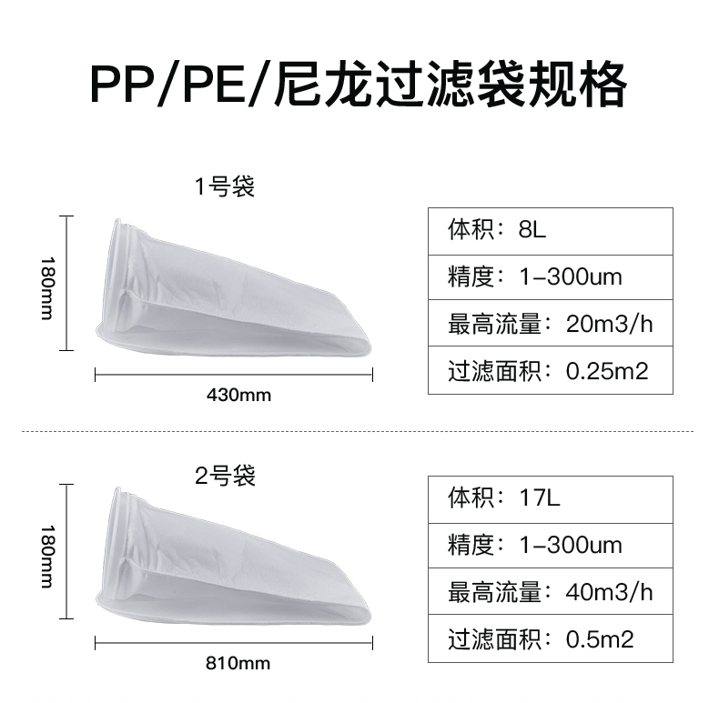 過濾(lǜ)精度: PP過濾袋的過濾精度可根據(jù)實際需要選擇,通常範圍從0.1微米到500微米(mǐ)