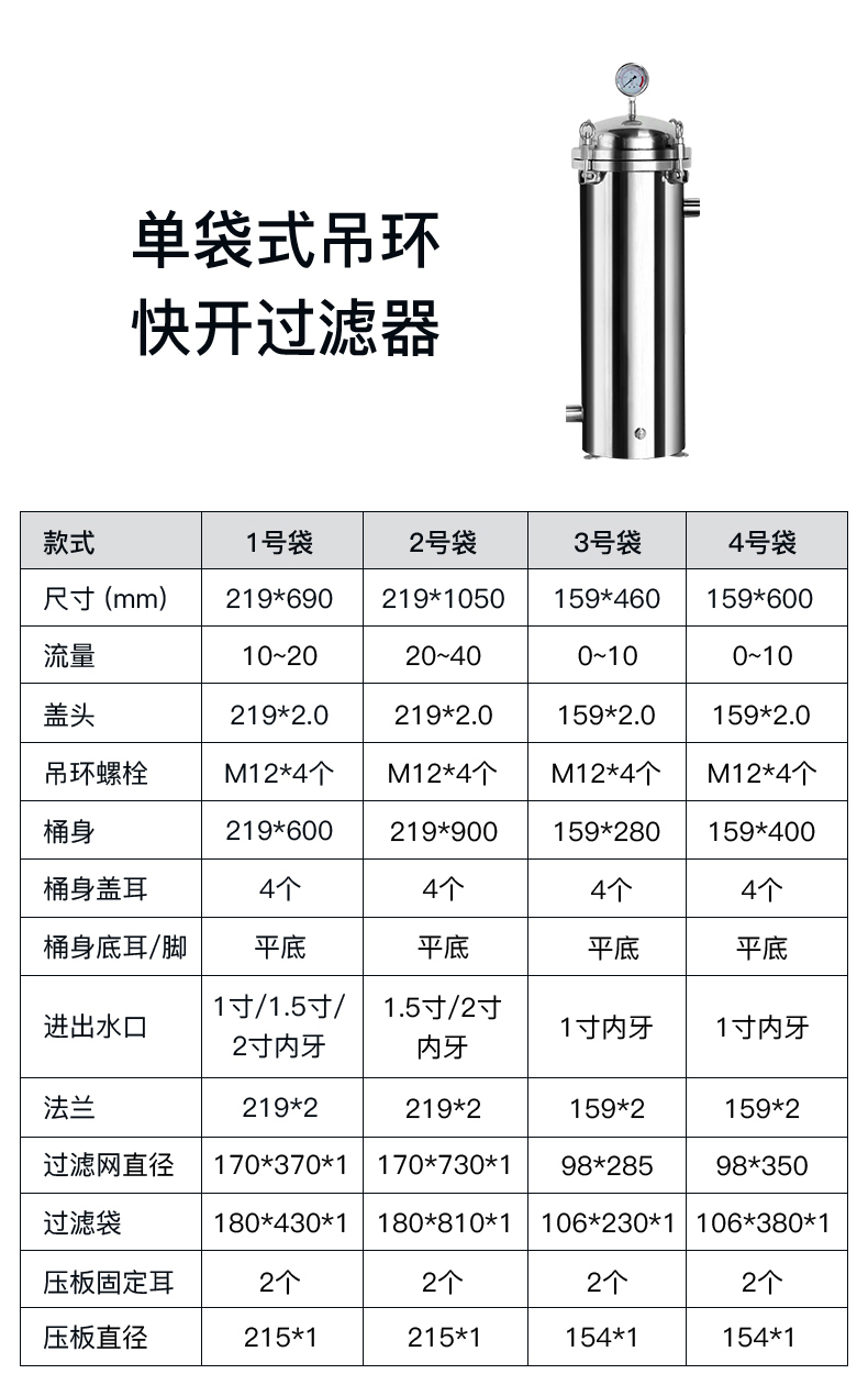 的(de)腐(fǔ)蝕餘度與較高的可靠性。選用(yòng)01#、02#尺寸規格的過濾袋或過濾網,濾袋(dài)更換非常便捷。